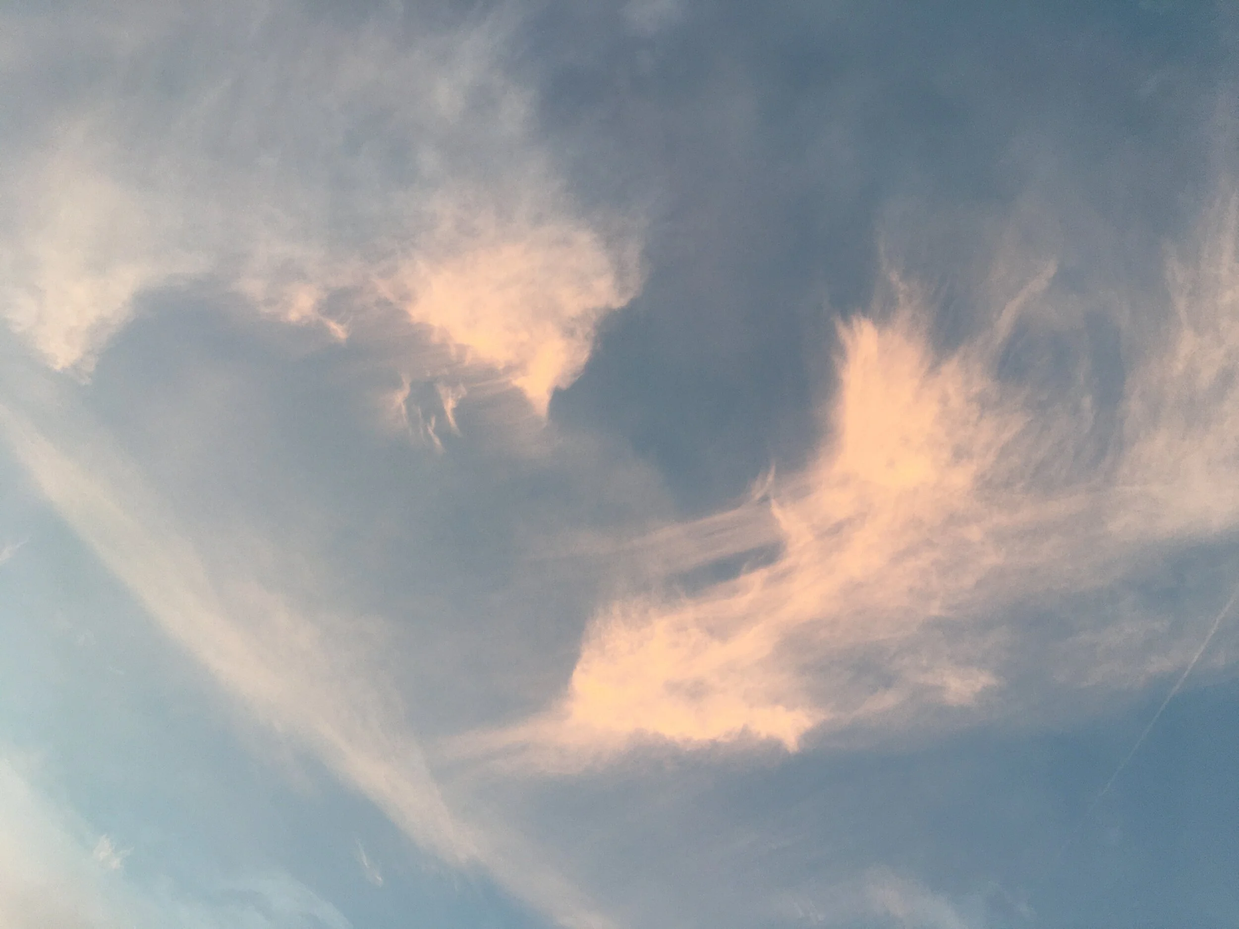 A lonely junco flies by I feel the same Bringing comfort in knowing I’m not the only one flying alone this morning I get to the back fence line The cloud formation on the horizon appears as a mountain range I image it so The lining on the clouds begin to appear, this time gold And the sun is rising…